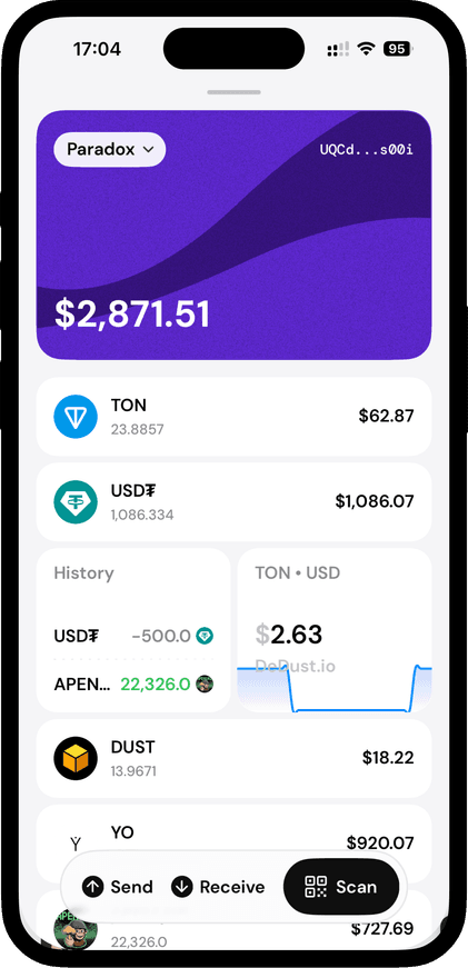 Find everything you need about TON with in-app search — tokens, dApps, and more in one place.